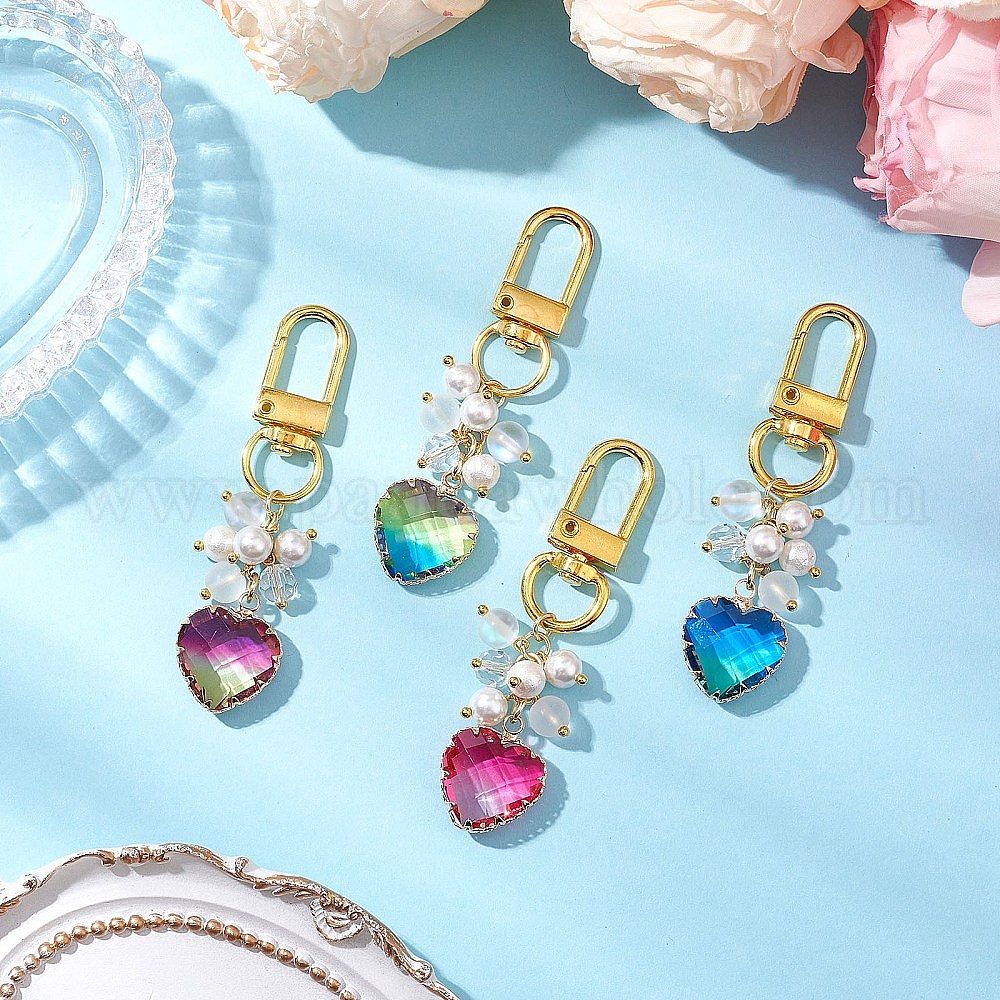 Подвеска в форме сердца из стекла и ракушки с жемчугом, Поворотные застежки-брелки для украшения сумок