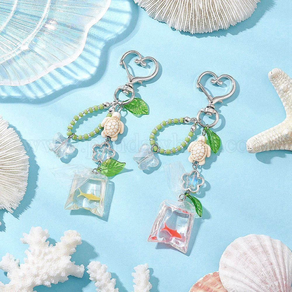 Сумка из смоляной золотой рыбки и подвеска в виде черепахи из синтетической бирюзы, с поворотными застежками сплава