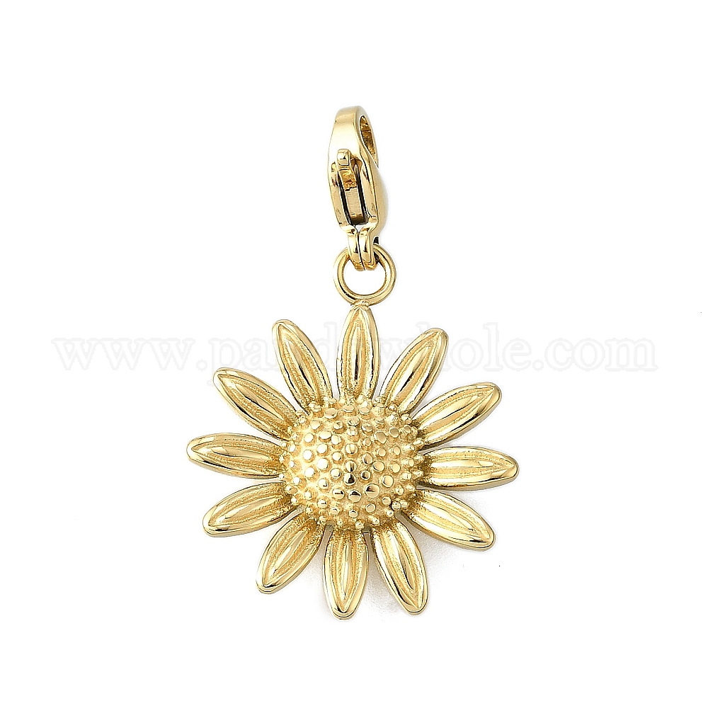 • Настоящее золото 18K 304 подвески из нержавеющей стали украшения, прелести подсолнуха, ионное покрытие (ip), реальный 18 k позолоченный, 32 мм