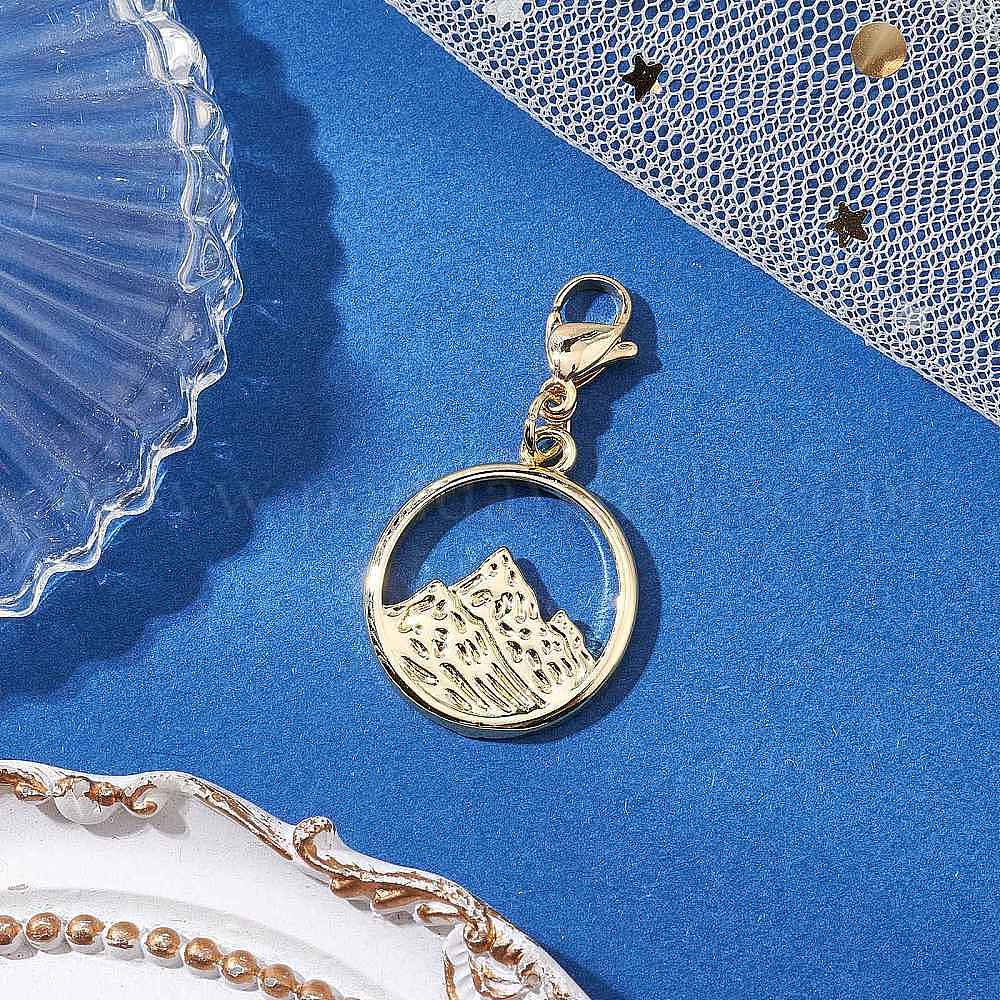 • Mountain Подвесные украшения из латуни, 304 подвеска-застежка-лобстер из нержавеющей стали для украшения сумок, золотые, гора, 37 мм, Кулон : 24x20x2 мм