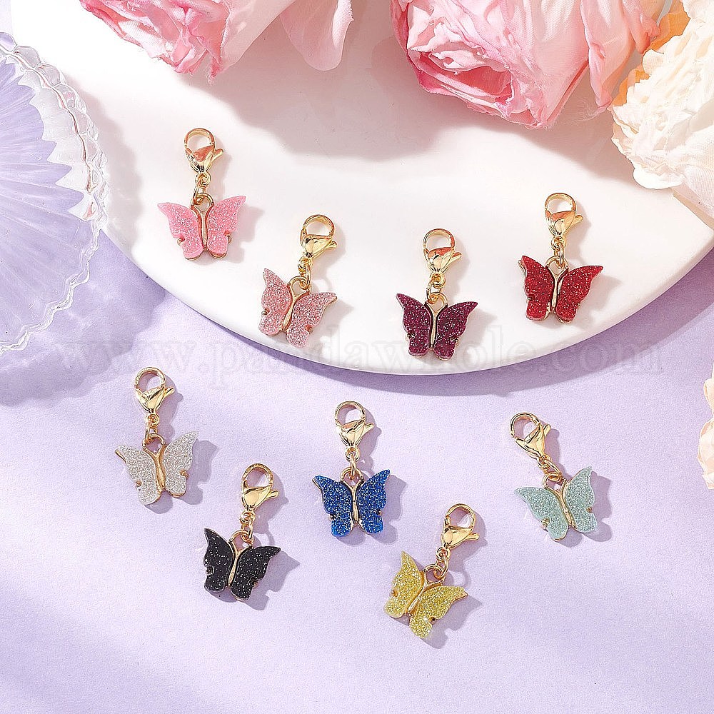 Блестящая бабочка сплав эмаль подвеска украшения, с 304 из нержавеющей стали Lobster Claw застежками