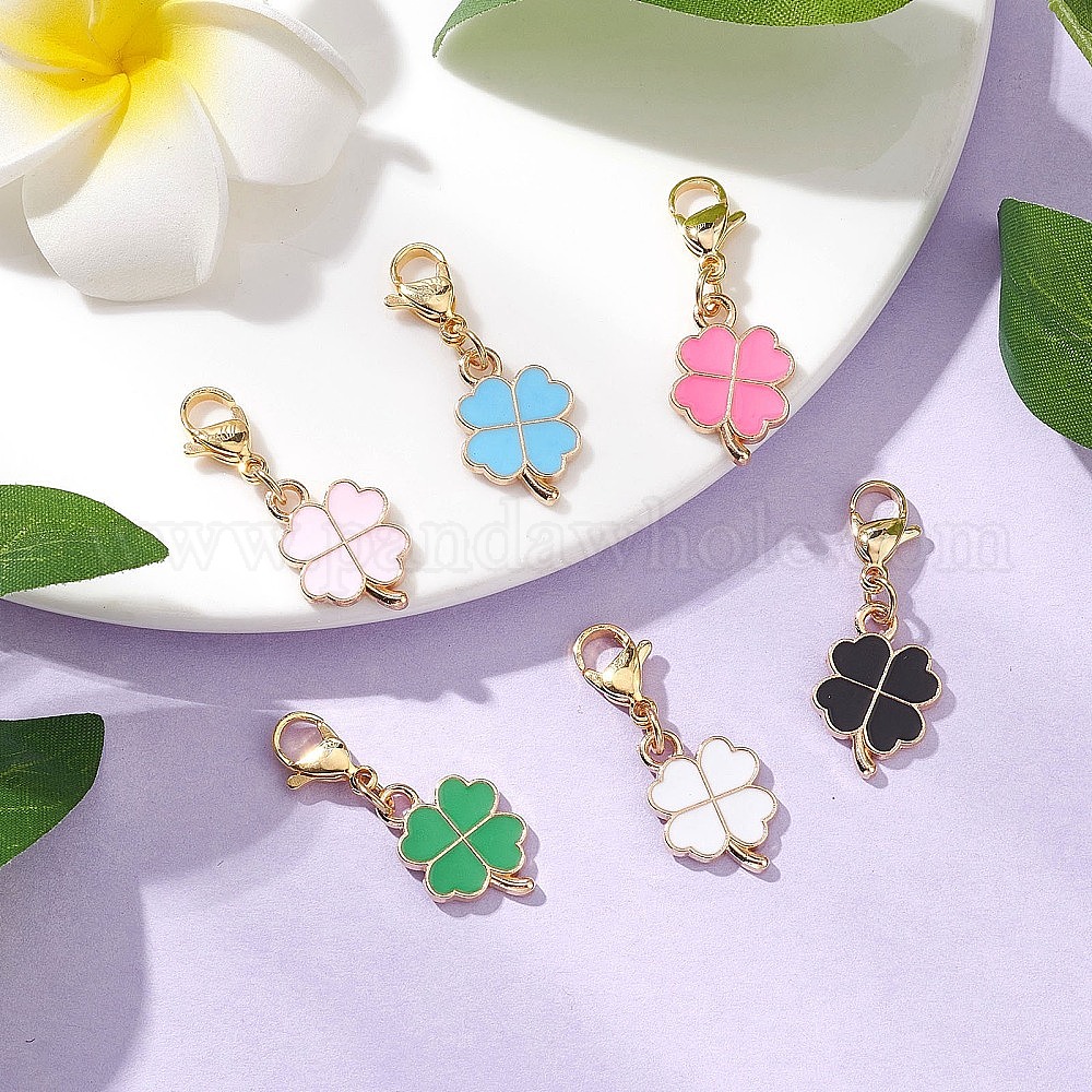 Подвесные украшения из эмали из сплава клевера, с 304 из нержавеющей стали Lobster Claw застежками