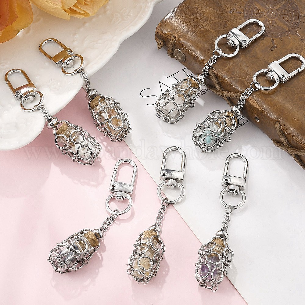 • Платиновый & Цвет Нержавейки Чакра натуральный драгоценный камень в стеклянной бутылке желаний подвеска украшение, с поворотными застежками из сплава и 304 цепями из нержавеющей стали, платины и нержавеющая сталь цвет, 80 мм, 7 шт / комплект