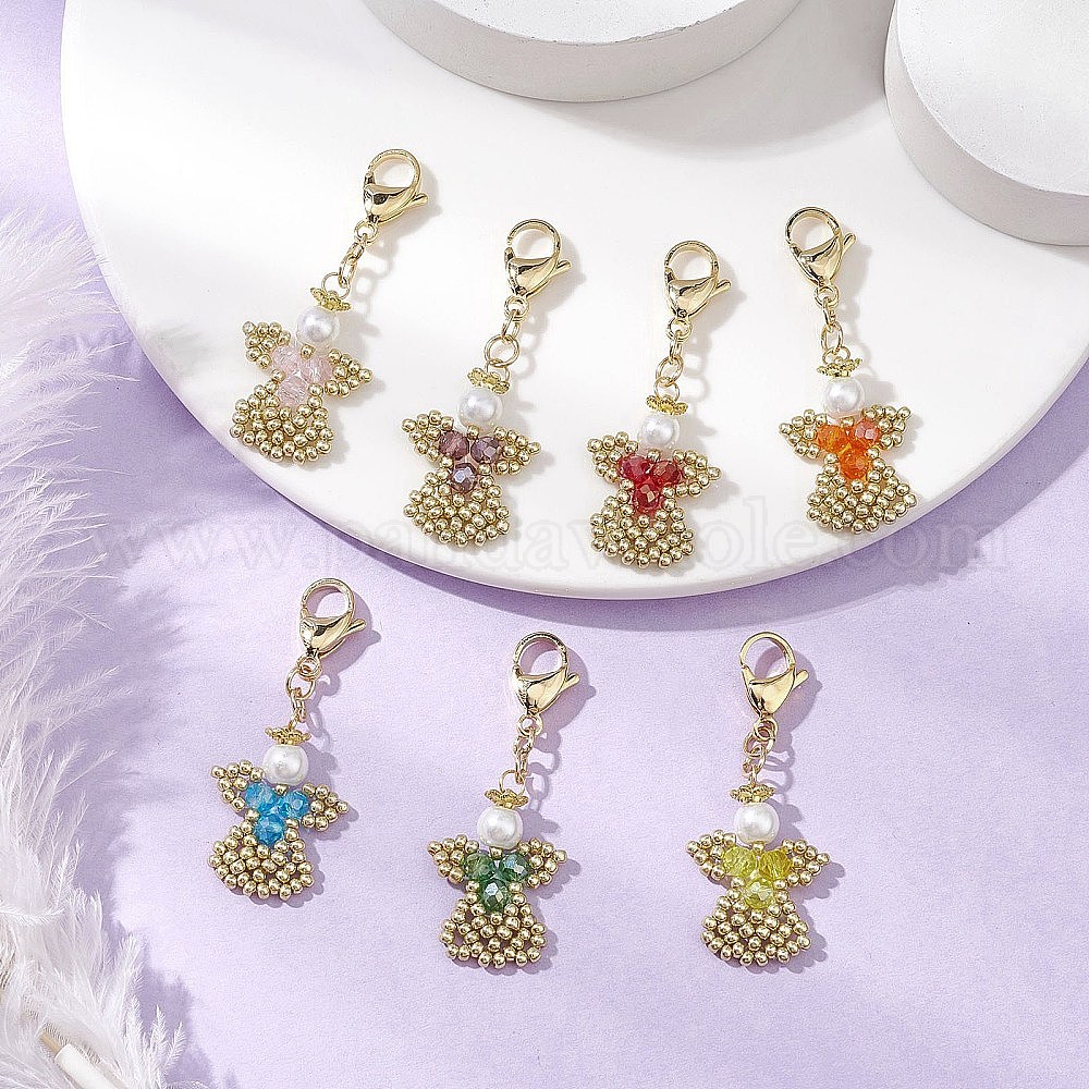 Подвеска в виде ангела из стеклянного жемчуга и стеклянных бусин, с 304 из нержавеющей стали Lobster Claw застежками