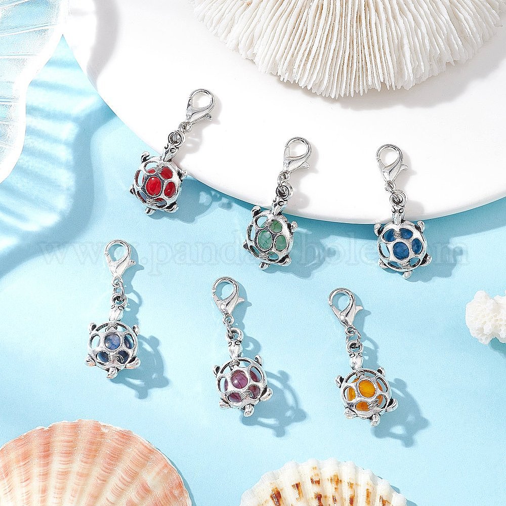 Натуральные огненные потрескивающие бусины агата подвески украшения, с цинковым сплавом застежками омаров коготь, черепаха, античное серебро