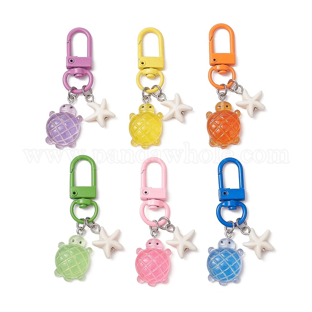 Подвесные украшения из непрозрачной смолы с градиентным цветом, с металлическими поворотными застежками и синтетической бирюзой и железными плоскими головками, черепаха