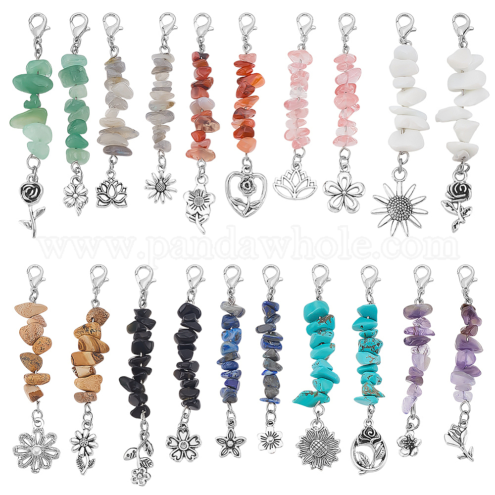 20шт. подвеска с натуральными и синтетическими драгоценными камнями, с подвесками в виде цветка из сплава и карабинами