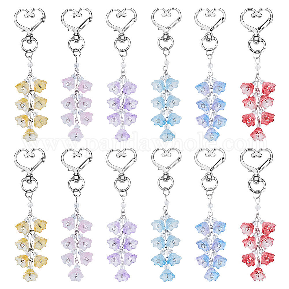 12шт 6 цвета ландыш стеклянный кулон украшение, с поворотными застежками сплава