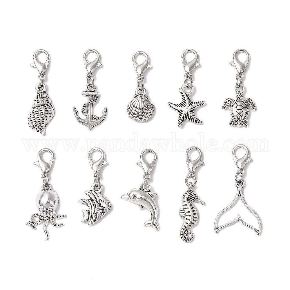 Морские животные тибетский стиль сплав подвески украшения, с карабин-лобстерами