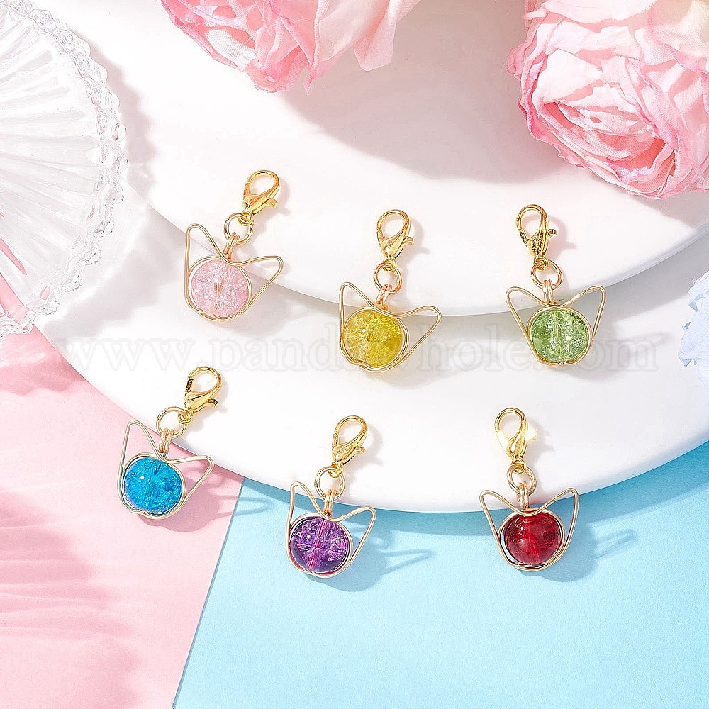 Подвеска в виде головы кошки из медной проволоки, стеклянные бусины, украшения, с цинковым сплавом застежками омаров коготь