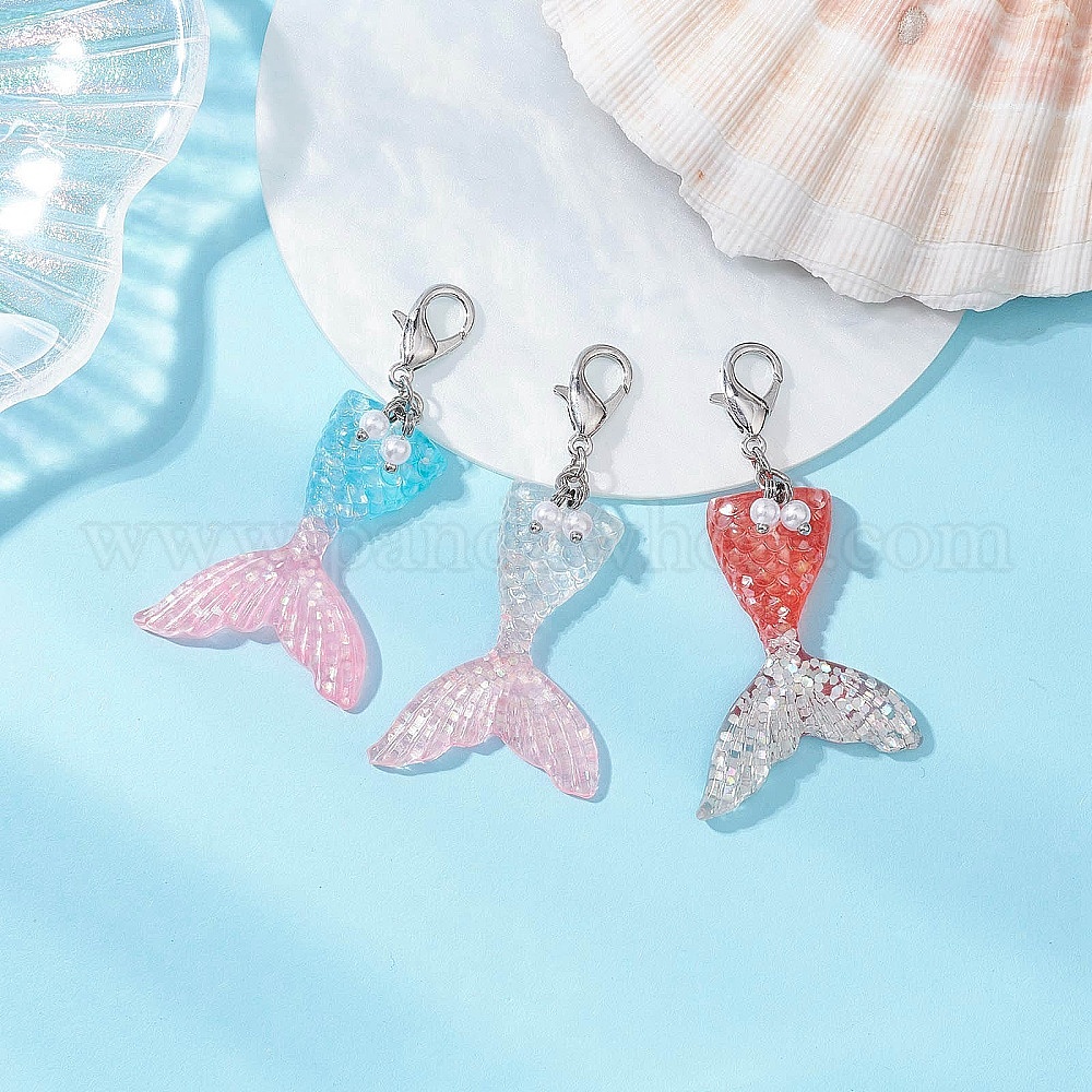 Подвеска из смолы в виде хвоста русалки, с бусинами из АБС-пластика, имитирующими жемчуг, и застежками-лобстерами из цинкового сплава