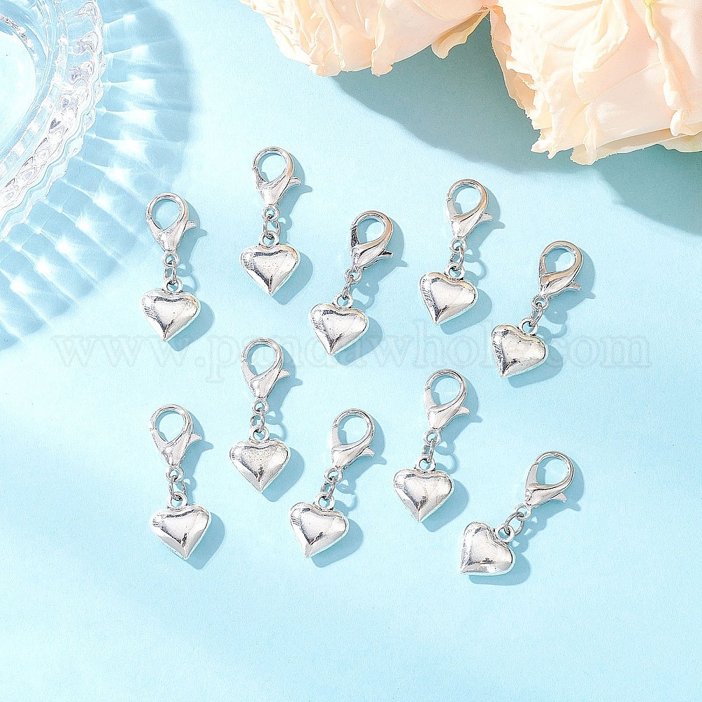 • Античный Серебристый & Платиновый Украшения из тибетского сплава, с карабин-лобстерами , сердце, старинное серебро и платина, 31 мм, 10 шт / комплект