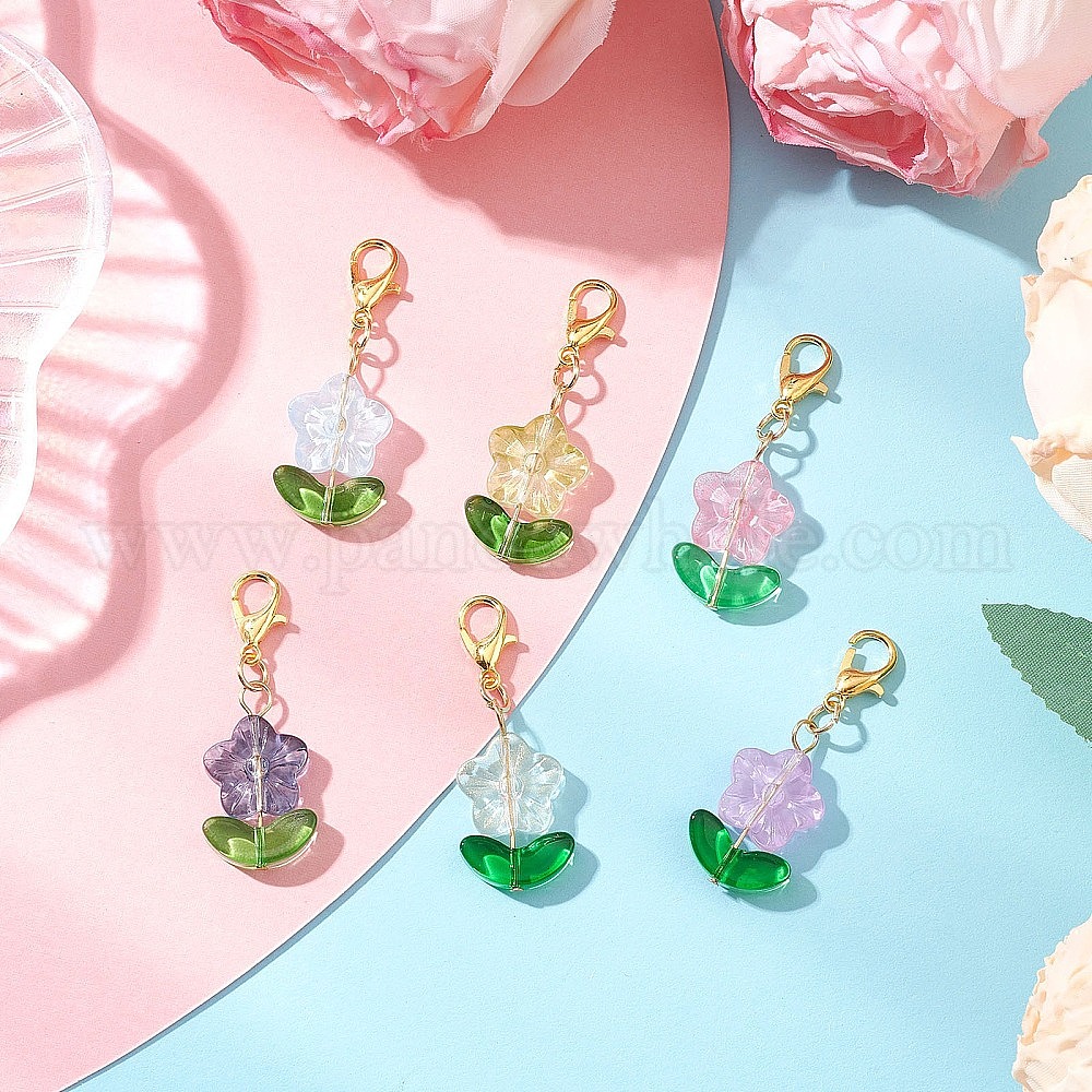 Стекло подвесные украшения, с цинковым сплавом застежками омаров коготь, цветок