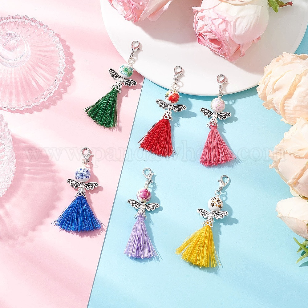 Ангел ручной работы, фарфор с цветочным принтом и поликоттоновая подвеска с кисточками, с цинковым сплавом застежками омаров коготь