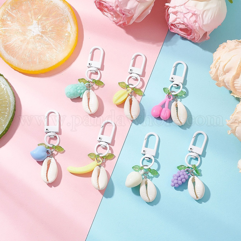 Подвесные украшения из акриловых фруктов и ракушек, с поворотными карабинами и застежками из цинкового сплава, покрытыми краской для запекания