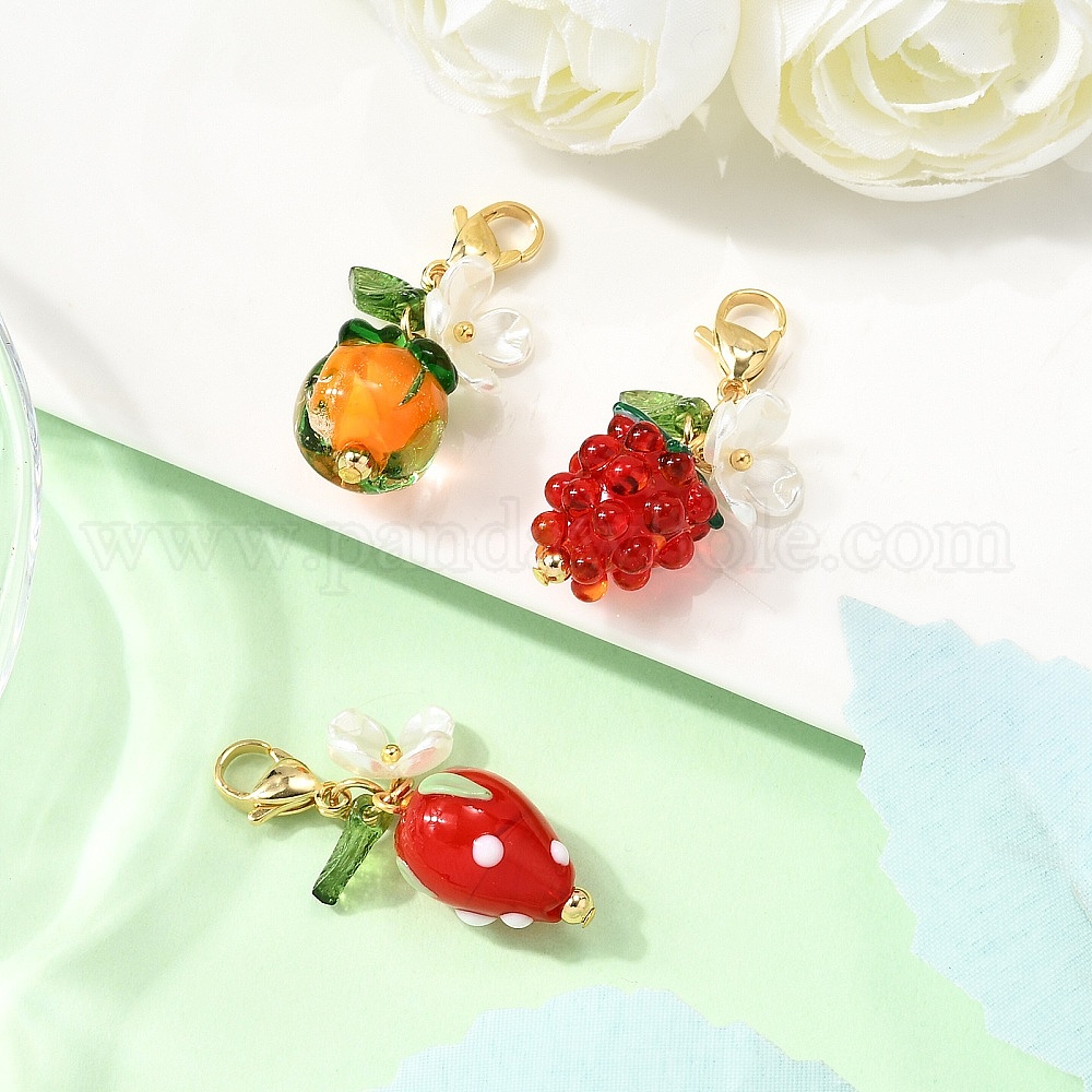 3шт. подвесные украшения в виде фруктов ручной работы в стиле лэмпворк, с цветочным АБС-пластиком, имитацией жемчуга и застежками-лобстерами