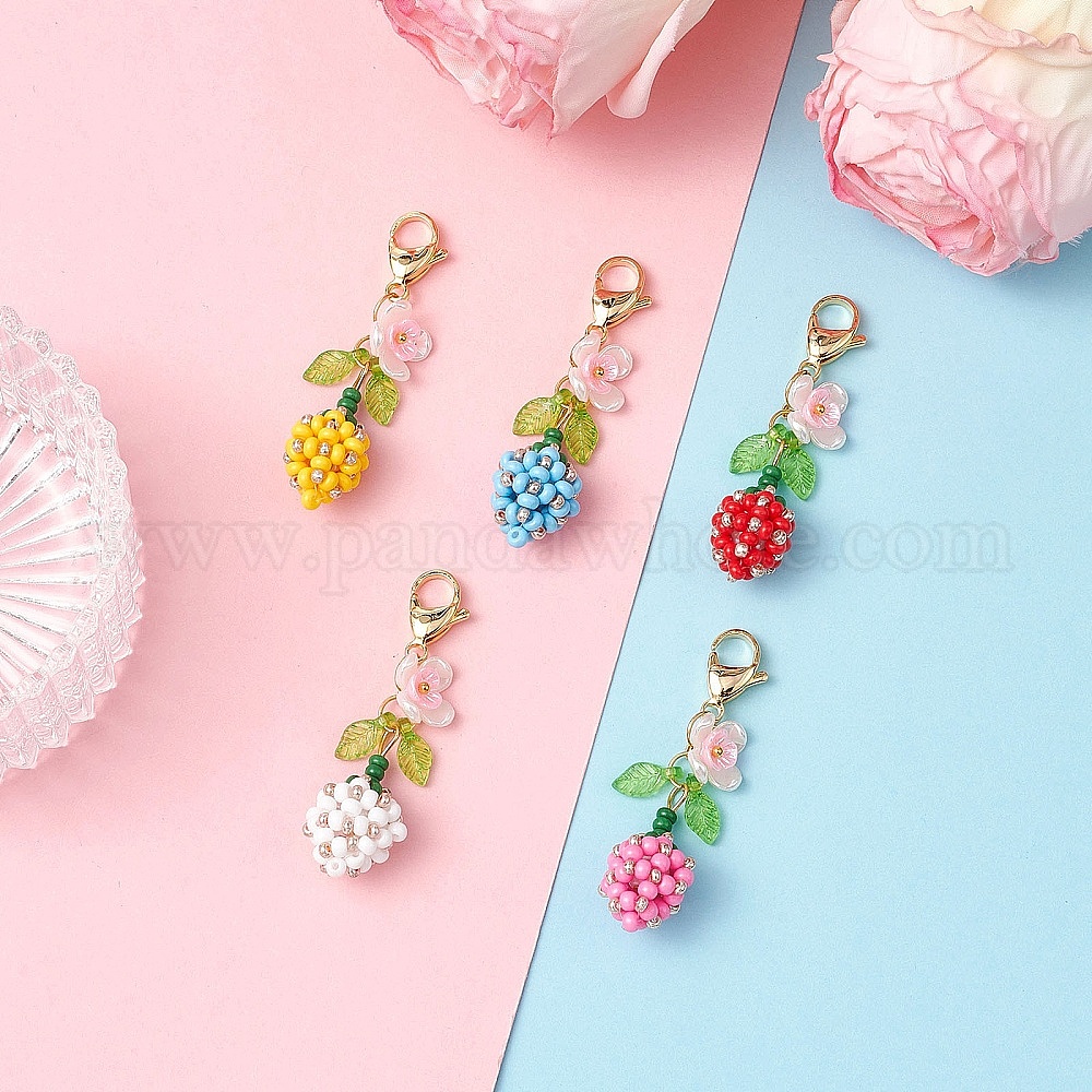 Подвеска в виде цветочного бутона, стеклянный жемчуг и бисер, с акриловыми подвесками и 304 застежками-карабами из нержавеющей стали. (034R73)