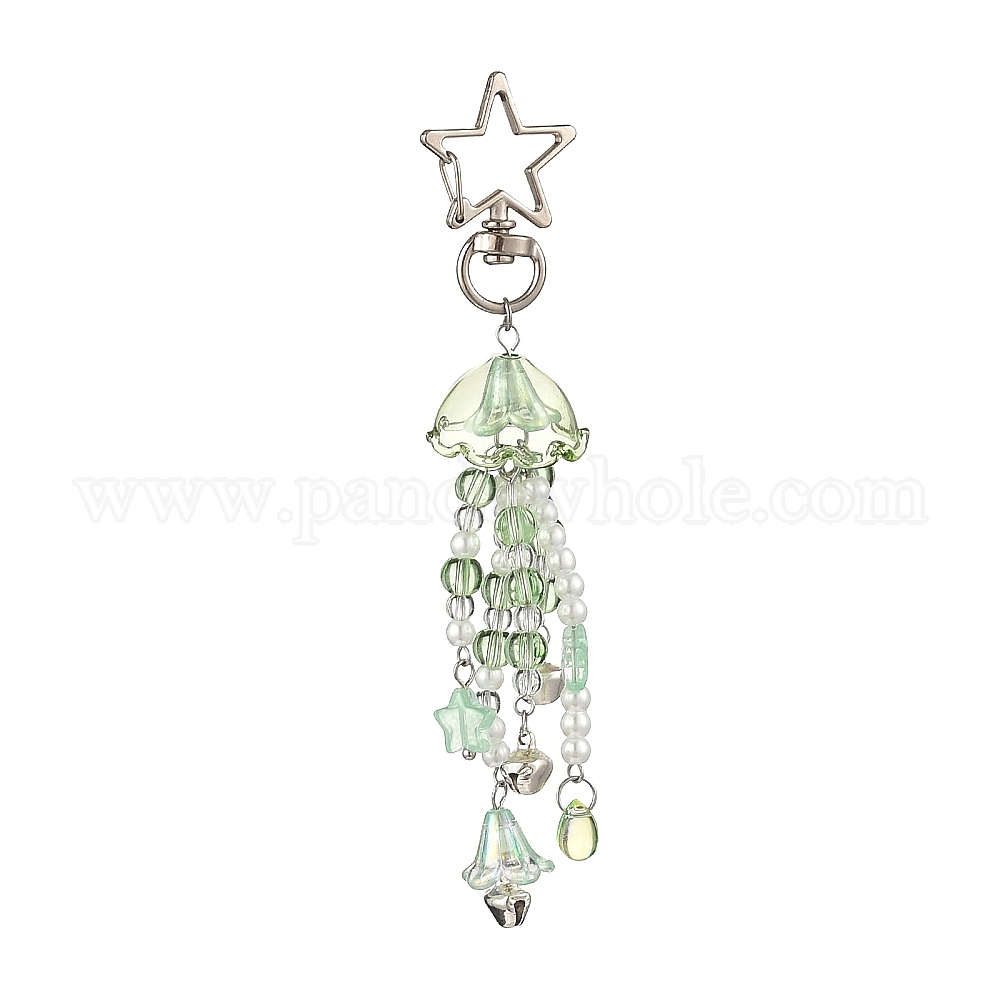 Подвесные украшения из цветочного стекла и пластика, жемчуга и сплава, с поворотными застежками в форме звезды, платина