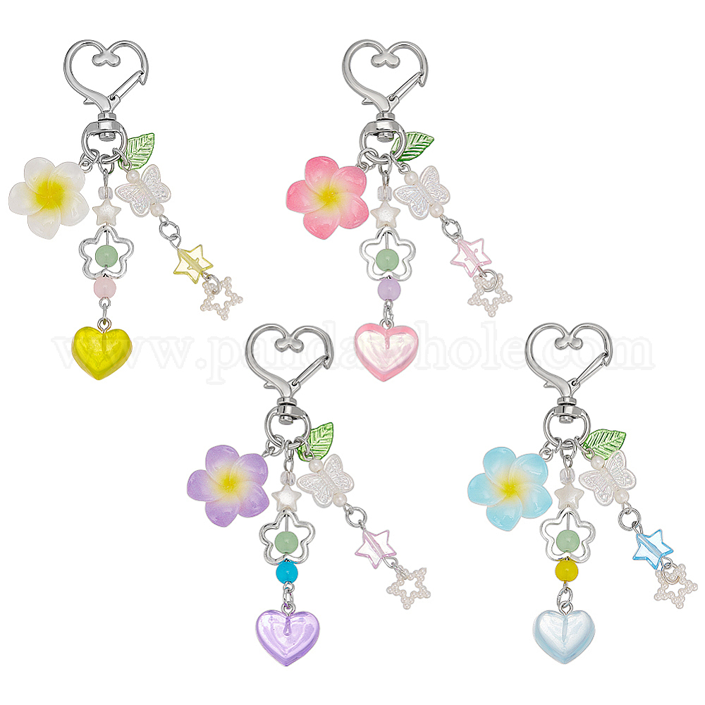 4 шт. 4 цвета, подвесные украшения из искусственного жемчуга в виде звездного стекла, с застежками из сплава и подвесками в виде цветов из смолы