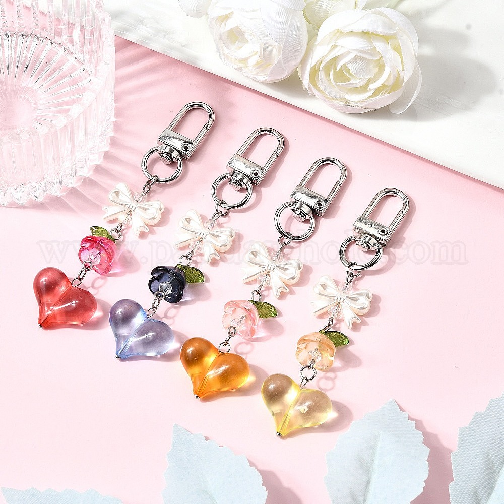 4шт. стеклянные и акриловые подвесные украшения, с поворотными застежками сплава, сердце и лук