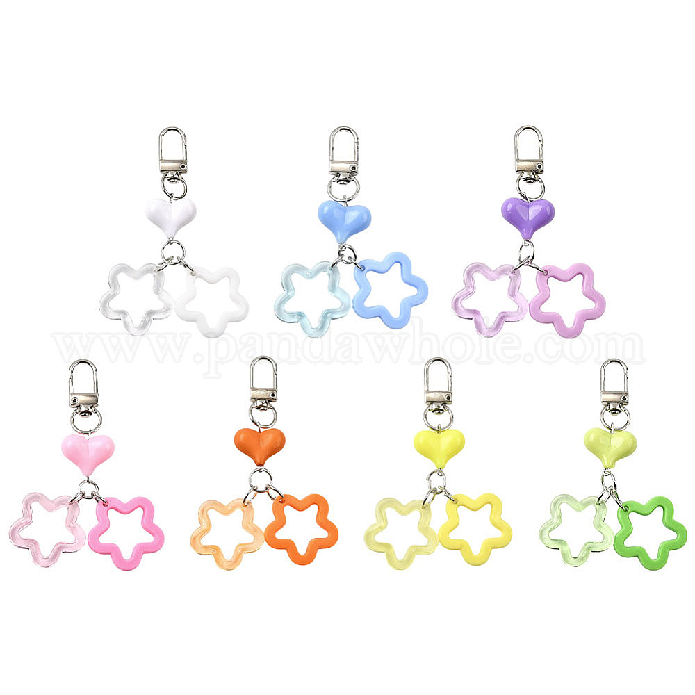 7 шт. 7 Цветные подвесные украшения из смолы в форме звезды и сердца, подвески-застежки с поворотным механизмом из сплава, напечатанные распылением, для украшений сумок