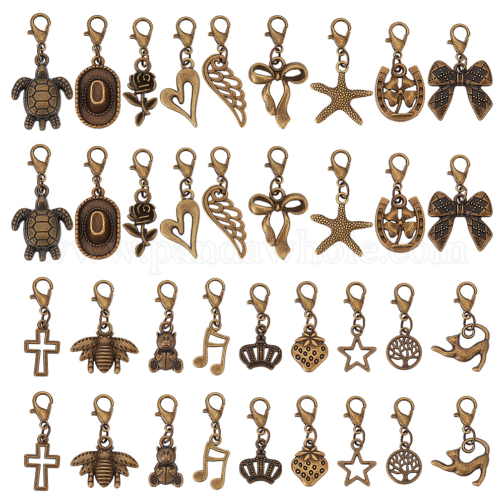 36шт 18 стили подвески из сплава украшения, разнообразные, Сплав с когтем омара (0355M6)