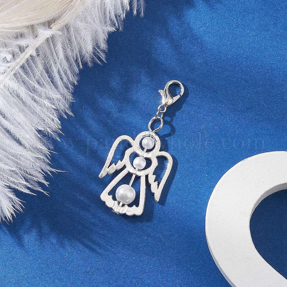 Подвеска в виде ангела из сплава и стекла с жемчугом, с карабин-лобстерами , белые