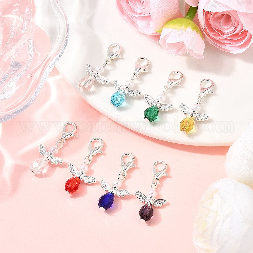 Подвеска в виде ангела из стекла и пластика ABS с имитацией жемчуга, с цинковым сплавом застежками омаров коготь