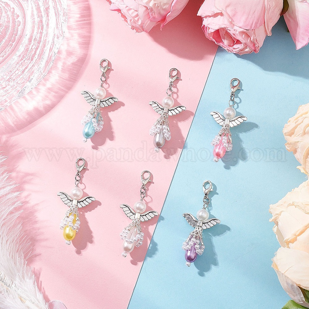 АБС-пластик имитация жемчуга подвесные украшения, ангел, с тибетском стиле сплава, стекло и железо