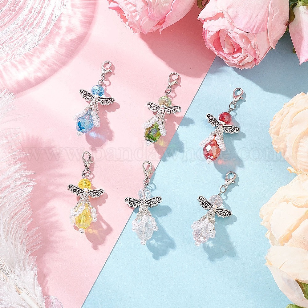 Стекло подвесные украшения, ангел, со сплавом, абс пластик имитация жемчуга и железа