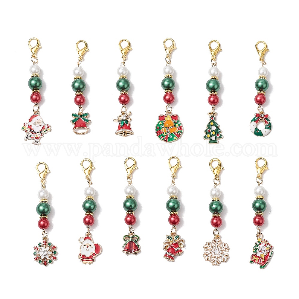 12 шт. рождественские украшения из эмалевого сплава, со стеклянной жемчуга и сплавов Lobster Claw застежками, разнообразные