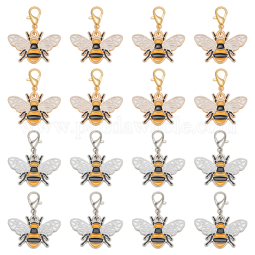 32шт 2 цвета пчелы сплав эмаль подвеска украшения, Сплав с застежками когтя омара