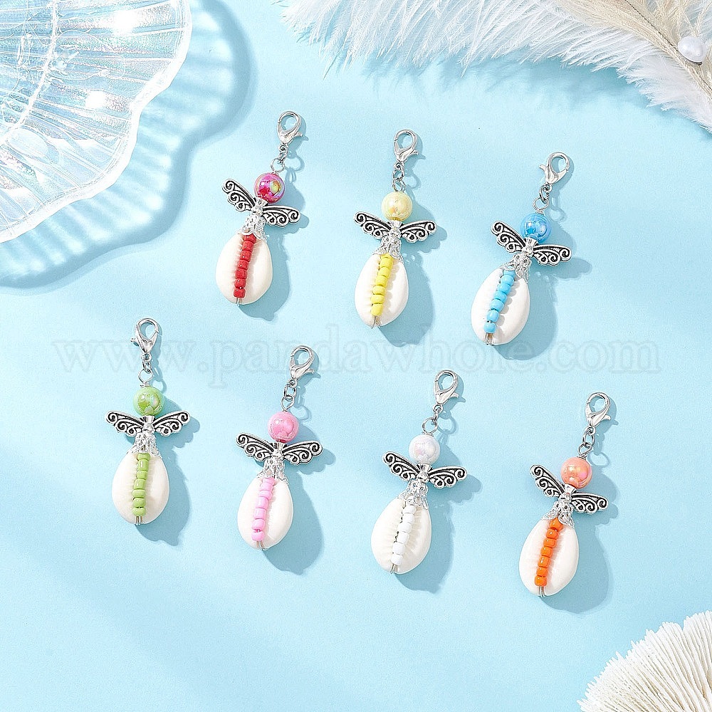 Стеклянные подвесные украшения, с застежками-карабинами из цинкового сплава и ракушкой, ангел, платина