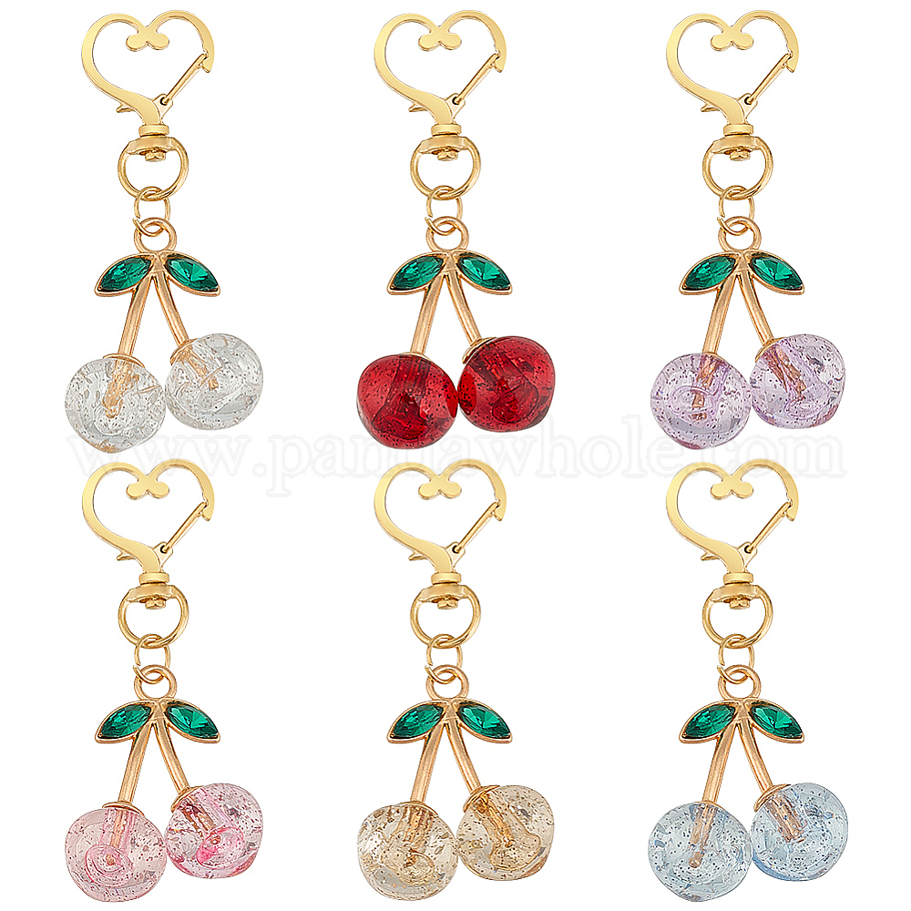 6шт 6 цвета акриловые подвесные украшения, с застежкой-сердечком из сплава, вишня
