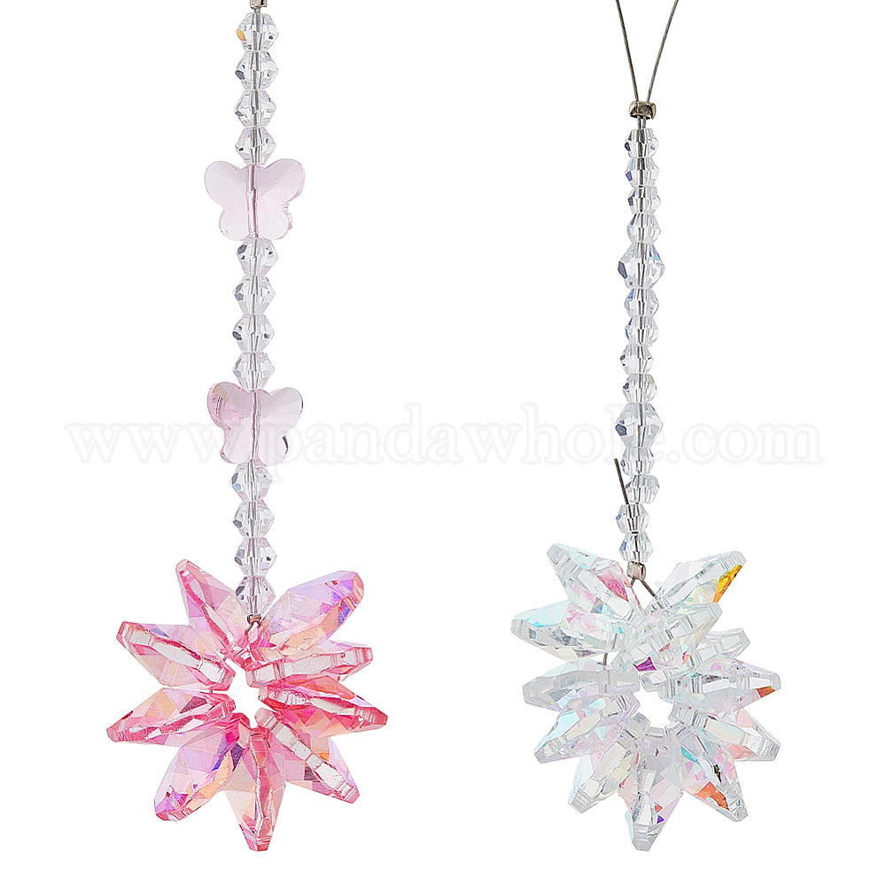 2 шт. 2 стили стеклянные подвесные украшения в виде цветов и снежинок, украшение для подвески автомобиля