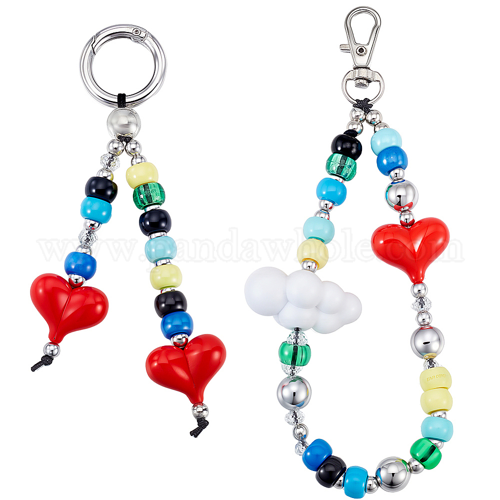 • (52) Непрозрачная лаванда 2шт 2 стили акриловые и пластиковые подвески в форме сердца, Сплав с застежками, платина, разноцветные, 120~150 мм, 1 шт / стиль