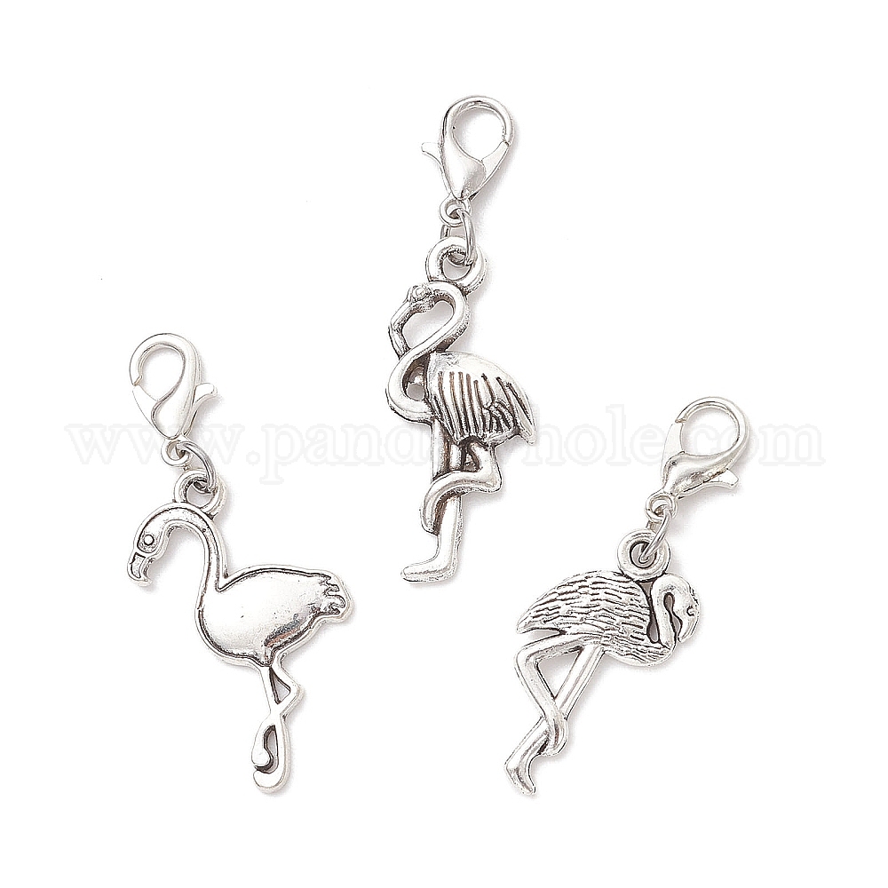 3шт. подвески-фламинго из сплава, с карабин-лобстерами