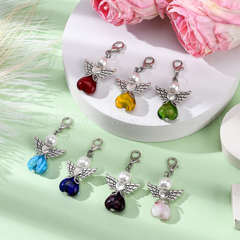 Стеклянный кулон в виде сердца ангела, с цинковым сплавом застежками омаров коготь