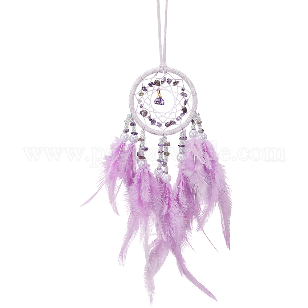 1 Набор украшений из натуральных драгоценных камней, сплетенных в сетку/паутину с перьями., Железное кольцо для украшения домашнего автомобиля