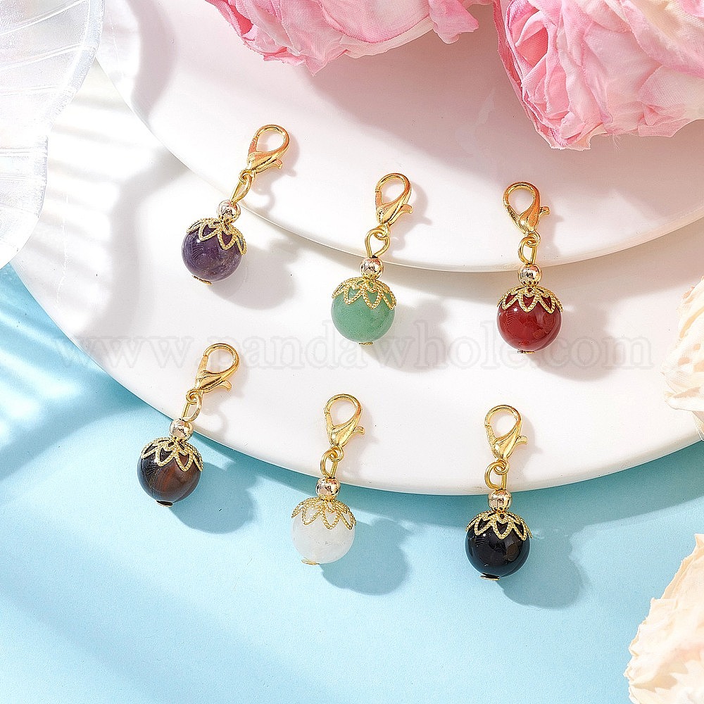 6 шт. круглые подвески из натурального черного оникса, сердолика, аметиста, тигрового глаза, зеленого авантюрина и белого нефрита, с карабин-лобстерами