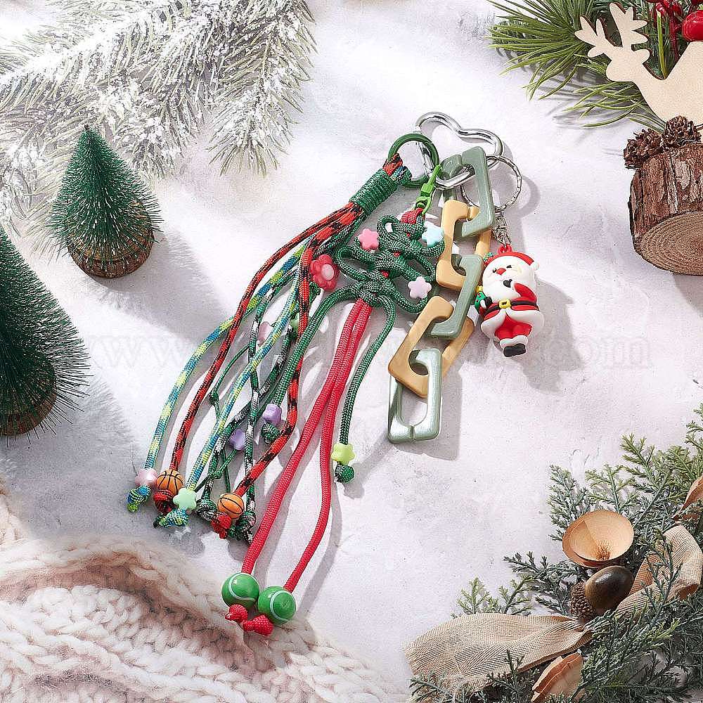 Рождественские украшения из полиэстера и спандекса, веревки, шнуры, подвески, с пластиковыми подвесками в виде Санта-Клауса и алюминиевыми застежками в виде сердечек