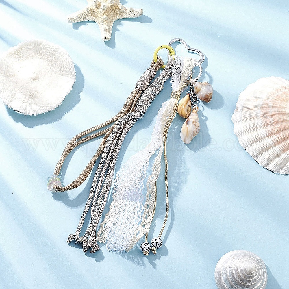 Веревки из полиэстера и спандекса подвесные украшения, с подвесками в виде акриловых ракушек, кружевной отделкой и алюминиевыми застежками в виде сердечек