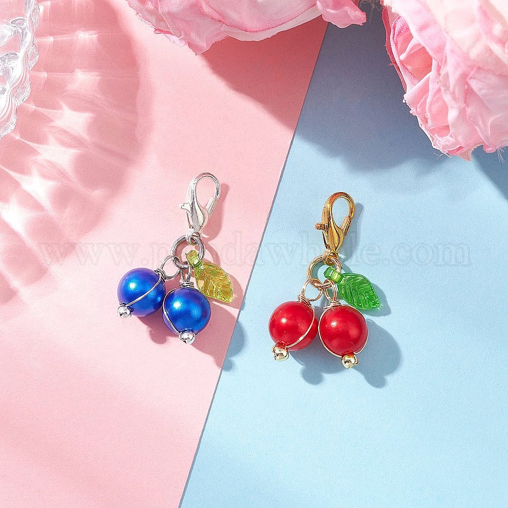 2 шт. 2 Цвета: АБС-пластик, имитация жемчуга и акрил, подвесные украшения, вишня, Сплав с застежками когтя омара