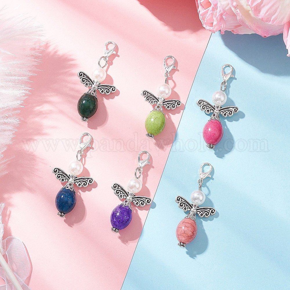 Подвесные украшения из акриловых бусин, имитирующих бирюзу, с эффектом потрескивания, ангел, с цинковым сплавом застежками омаров коготь