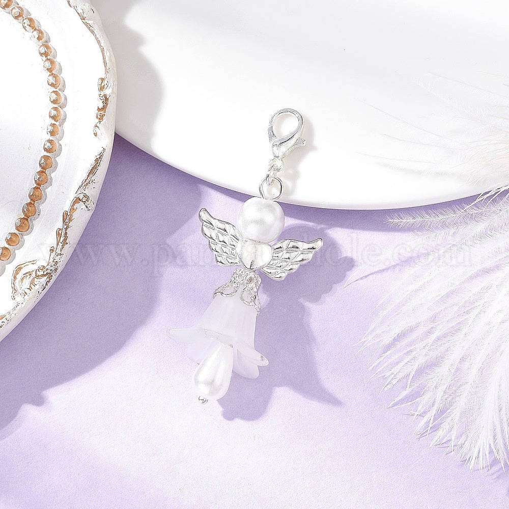 Подвесные украшения из стеклянного жемчуга и прозрачного акрила в виде ангела с крыльями, Сплав с застежками когтя омара, платина