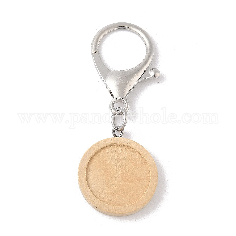 Деревянные плоские круглые подвесные украшения, с 304 из нержавеющей стали Lobster Claw застежками