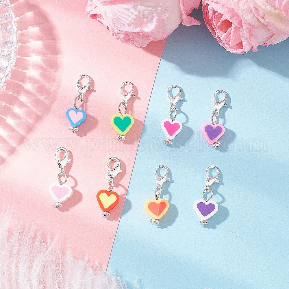 • (52) Непрозрачная лаванда Украшения из кулонов из полимерной глины, сердце, с карабинами из сплава серебра и цинка, разноцветные, 26 мм