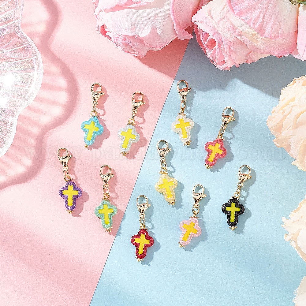 10 шт. подвесные украшения ручной работы из эмали лэмпворк, крестик, с 304 из нержавеющей стали Lobster Claw застежками