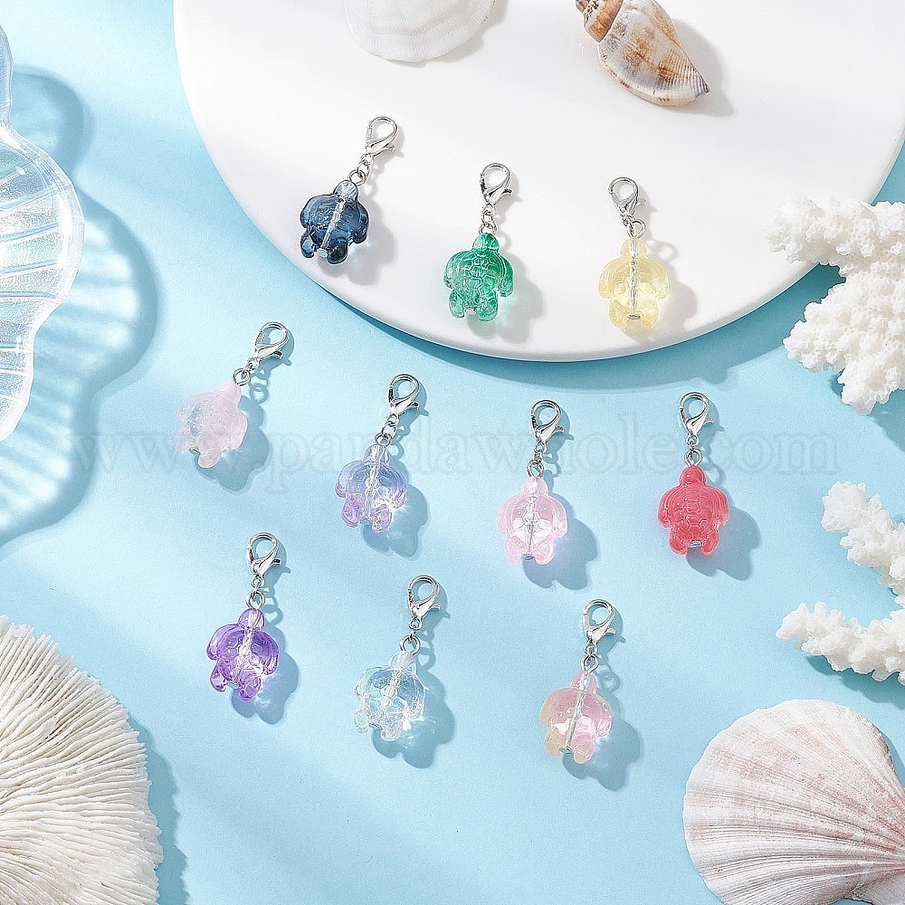 Стекло подвесные украшения, с цинковым сплавом застежками омаров коготь, черепаха