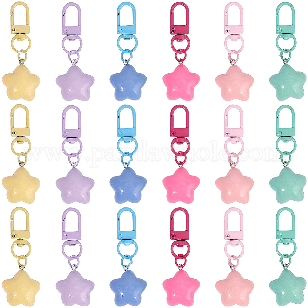 18шт. 6цвета, подвески в виде звезд из смолы, с поворотными застежками сплава